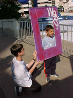 Vendredi, nous avons assisté à la projection d'un documentaire de la 5ème sur les webtrotteurs de Bourges. Après, nous avons fait le tour du festival. Le soir, nous avons embarqué dans la fourgonnette pour "Paris by night" (Notre Dame, Tour Eiffel, Trocadéro). Le lendemain : quartier libre, nous décidons d'embarquer pour la mongolfière. L'après-midi : au boulot (faut pas rêver). Photos et interviews au programme. Samedi soir, nous avons assisté à une représentation de "Shazam" de Philippe Découflé. C'était vraiment magnifique. Et voilà notre week-end se termine. Au revoir à tous nos collègues webtrotteurs. J'espère que d'autres manifestations comme celle là se reproduiront . Nous pourrions découvrir d'autres webtrotteurs, d'autres villes et agrandir la famille des webtrotteurs. Merci à Créteil et à toute l'équipe "Initial". Cédric, 14 ans, collège de Kerhallet |