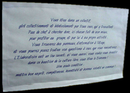 L'Élabo en quelques mots...L'Élaboratoire est un collectif artistique rennais autogéré qui regroupe 11 compagnies, des artistes, des techniciens, des administrateurs, des nomades et même un pompier ! Toutes ces personnes font parti de l'Élaboratoire pour autant de raisons qu'il y a d'individus dans ce collectif. Une chose pourtant, les rassemble : la création.