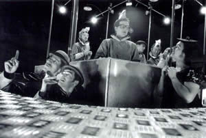 Les Alama's Givrés existent depuis 1992. Ses membres fondateurs, Laurent Desflèches et Patrick Dordoigne, collaborent ensemble depuis près de 14 ans. Tous deux ont participé à de nombreuses aventures artistiques dans le domaine des Arts de la Rue. Avec "Raoul Moil'Sel Cuisinier", ils signent leur première création qui va contribuer à définir un style propre à la compagnie. "Toubib or not Toubib", la seconde création, révèle l'intérêt qu'ils portent au castelet comme espace scénographique. Cette clinique circulaire, habitée d'humaines marionnettes, propose avec son ouverture scénique à 360°, un autre usage du castelet traditionnel. Avec un sens de l'humour grinçant, un certain goût pour l'absurde et les situations décalées, ils créent, sans cynisme, leurs fables tragiques et peignent le tableau de nos "misères quotidiennes" avec tonicité. Théâtre de marionnettes, théâtre de mouvement, théâtre d'objets, cinéma sont autant d'univers de référence qui s'enrichissent mutuellement et nourrissent leur recherche. En 1998, "Givropolis", la troisième création, raconte l'histoire d'une ville, histoire d'une moderne jungle urbaine... Avec ce castelet métallique installé sur la place publique, s'affirme le désir d'offrir à une audience diversifiée, cosmopolite, des spectacles qui recèlent plusieurs niveaux de lecture et qui parlent à chacun de notre monde à tous. Ces trois créations s'inscrivent dans un cycle intitulé "la trilogie des castelets". Elles ont été présentées en France, en Angleterre, en Allemagne, en Belgique, en Hollande, en Pologne, en Corée ainsi qu'au Brésil. La compagnie a également conçu le spectacle d'ouverture de la 7ème édition du Festival Viva Cité à Sotteville-lès-Rouen, a participé avec la compagnie Transe Express aux festivités liées à l'an 2000 sur les Champs Elysées et a mis en scène l'espace "Rue de la Parole" lors de la Fête de la Nationale 2 "RN 2000". A l'aube de ce nouveau millénaire, les Alama's Givrés tournent une page. Après huit années de création et de recherche autour de cette forme singulière d'utilisation de castelet, la compagnie s'ouvre à de nouveaux horizons. C'est ainsi qu'en mai 2001 une nouvelle création voit le jour : "les Manèges d'Aventures". |