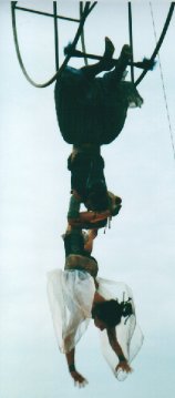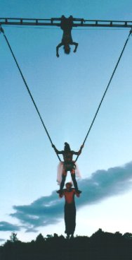 | Tour a tour, puis ensemble, la mère et la fille s'élèvent dans les airs et calligraphient leurs désirs éphémères au travers de figures acrobatiques et cursives, arabesques complices. | ![]() |