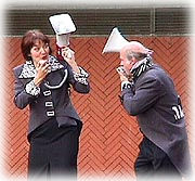 par mégaphone des bruits rencontrés (cyclomoteurs, camion-poubelle,