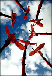 leurs cous flexibles. Longilignes rouges sur ligne blanche, les silhouettes