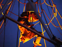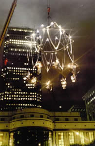 au-dessus des nuées". Trois ans plus tard, en 1999, Lâcher de Violons fait son apparition et complète la trilogie des spectacles aériens. Résolument baroque, cette scénographie monumentale met en scène 4 violonistes, 1 chanteuse lyrique, 1 trapéziste, 9 percussionnistes et un char à rythme ruisselant de musique.