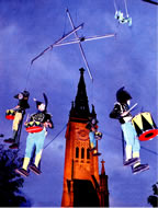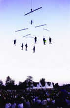 Enfin un spectacle de rue qui peut être vu de tous, même s’il y a 10 000 personnes..., alternative au sempiternel feu d’artifice qui clôture traditionnellement les grands rassemblements populaires. Fort de cette expérience, Transe Express décide de poursuivre ses investigations dans "l’Art Céleste" et produit les Maudits Sonnants. |