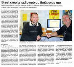 Lémission sera ecoutable en direct sur internet via la Webradio ruelibre.fr, et, à Brest, sur France Bleu Breiz Izel (99.3) et sur Frequence Mutine (103.8 de 13h20 à 18h).