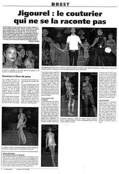 Le couturier Xavier Jigourel présentera sa quatrième collection intitulée « Le soir, je me raconte des histoires de Haute Couture » au Fourneau. Après un séjour au Brésil en 2005, le créateur revient en France avec une nouvelle collection de couture « homme et femme » qui défilera à Brest en guise d'anniversaire pour les 10 ans d'existence de la Maison. Un retour aux sources puisque c'est en 1997 que Xavier Jigourel présentait sa première collection au « Vieux Fourneau » !