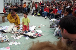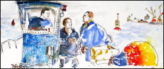 Ce clown anarchique, primaire ou subtil selon son humeur, nous parle de la vie des ports, leur actualité, leurs architectures, leurs autochtones, leurs problématiques, ce qui les lie, les différencie... Questionnant la singularité de chaque endroit traversé et collectant sur place des objets, des mots, des souvenirs, des sons, des vidéos et des photos, cette tournée maritime permettra de construire une épissure d’histoires, un carnet de voyage oral.