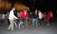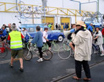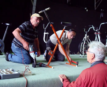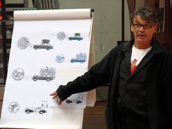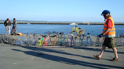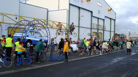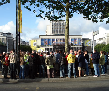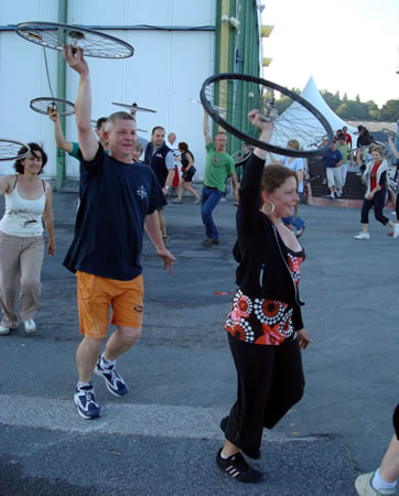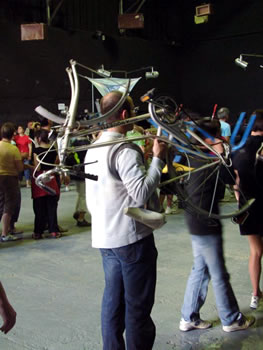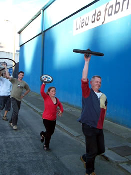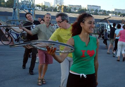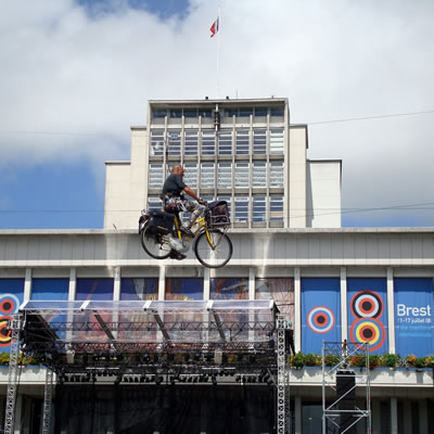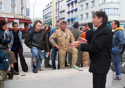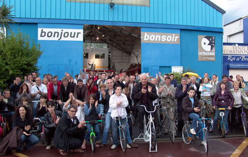 Le Fourneau et la compagnie Générik Vapeur rencontrent Christian Prudhomme, directeur du Tour de France. Pierre Berthelot et Cathy Avram, co-fondateurs de la compagnie Générik Vapeur, et une partie de leur équipe, étaient en repérage en ce début de semaine dans les rues de Brest. Que cache la rencontre des artistes marseillais avec le directeur de la Grande Boucle ? Tout ce que l'on peut dire pour l'instant, c'est que lors de ces deux jours on a parlé de vélo, de théâtre de rue, de musique... et d'une histoire racontée à toute la ville jusqu'au 3 juillet 2008 ! "