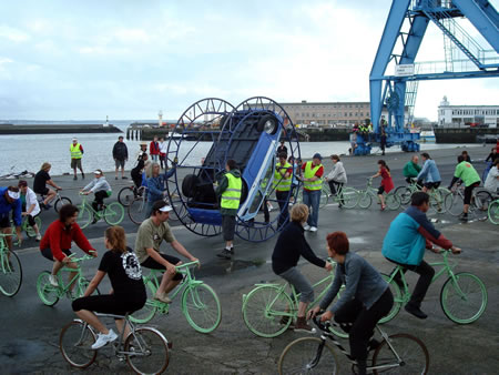 Deuxième scéance de répétitions du "peloton des 140", sur le port et toujours sous la conduite de la Cie Générik Vapeur.