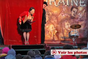 Samedi 12 décembre, 14h, 16h30 et 19hC'est toujours dans une ambiance foraine que Burattini et sa mère ont présenté ce merveilleux volatile qu'est le Jabberwock. Cet oiseau originaire d'une petite île située au sud de Madagascar (pas très visible sur la carte), a connu une migration difficile entre la pointe de l'Afrique et le grand froid de Sibérie, son œuf entre les pattes. Ce spectacle créé en 2009, et présenté au FAR du Pays de Morlaix cet été, est une belle et forte métaphore sur l'immigration.