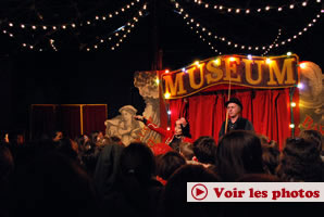 Vendredi 11 décembre, 18hAprès un mois et demi de résidence passée au Fourneau, L'illustre Famille Burattini a pu expérimenter dans le cadre du festival Plein les Mirettes sa toute nouvelle création « Muséum (Le Musée des Contes de Fées) ». Lors de 5 représentations scolaires et tout public, Buratt et Rita (enceinte du p'tit septième) ont présenté les différents objets féériques et fantastiques qu'ils ont accumulés depuis des années... dans les vides greniers, à la Foire Fouille ou à Jardiland (notez que vous pouvez faire plaisir à vos enfants en achetant pour 5€ les 25 kilos de galets du Petit Poucet !). Du soulier de Cendrillon, au peigne du Prince Charmant, en passant par le miroir magique de la belle-mère de Blanche-Neige, tous les objets merveilleux sont là et nous rappellent de ne pas trop oublier nos rêves d'enfants.