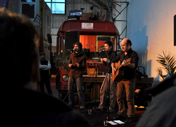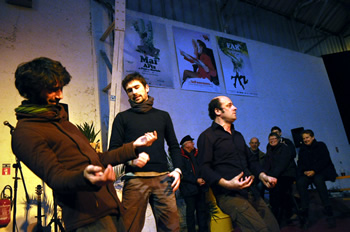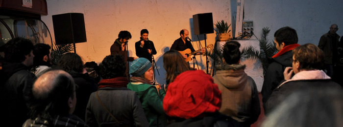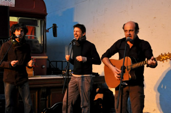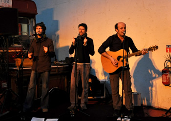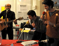Le groupe Masha entre en scène pour interpréter à trois voix et une guitare quelques unes de ses compositions originales. Après leur passage en octobre dernier à l'occasion du lancement de la Radio Rue Libre, c'est avec plaisir que l'on retrouve le trio finistérien aux mélodies imparables, aux chansons humoureuses, à l'écriture et l'interprétation empreinte d'une douce folie.