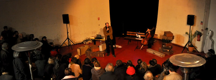 Interprétation : Philippe Fenwick et Marine Paris Spectacle autour de : « Un Théâtre qui Marche, 7000 kilomètres à pied en France à la suite d'un théâtre » de Philippe Fenwick.