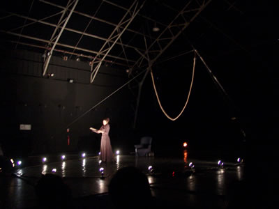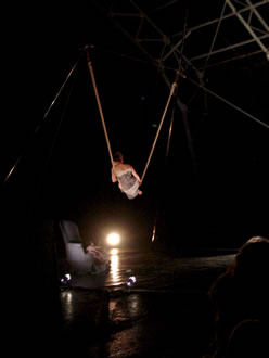 Ce projet « geste et cirque » s’intitule « soi(e) », « soie » de l’étoffe dans laquelle est faite le costume, et surtout « soie » d’un « soi profond » féminin, souffle de vie qui animerait le personnage du spectacle.