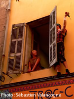 C'est une fin d'après-midi peu banale pour la rue Borda et ses habitants. Un amas de gens, un air d'opéra sorti d'on ne sait où, un homme en rouge peu virtuose jouant du cor de chasse, du rubalise serti de cœurs le long des immeubles...Quelque chose se trame, c'est sûr... Soudain, s'ouvre une fenêtre, en haut d'un immeuble, d'où s'envole un long rideau de tulle blanc. C'est encore lui ! Antoine Le Ménestrel, tout sifflant et crapahutant, qui fait son entrée dans les airs, comme un super héros en quête d'exploit. Un bouquet de roses rouges dans le dos, ce soir, il est Roméo et part en quête de sa Juliette. Évoluant sur les corniches, sur les gouttières et les toits, il frappe à tous les volets, dans l'espoir que sa belle lui ouvrira. Quel succès pour ce cœur d'artichaut car ce n'est pas une mais au moins quatre Juliette, résidentes de la rue Borda, qui répondent à ses cris d'amour et lui ouvrent les bras. Tantôt timides, amusées et espiègles, les demoiselles reçoivent chacune une rose et pour les plus chanceuses un baiser ou une étreinte. Il vole le Ménestrel, ses pieds de funambule ne touchent jamais terre. C'est un homme des hauteurs, un être nébuleux, un peu fou et très poète, marquant les murs sur son passage de quelques cœurs à la craie rouge, graffitis tendres et éphémères.