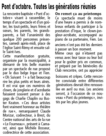 Octobre 2009 / Avril 2010 Accueil - La presse Les photos : Pont d'Octobre 2009 - Pont d'Avril 2010