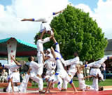 un enchaînement étourdissant de saltos, pyramides, triples