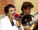 Il est de coutume aux Vieilles Charrues d'accueillir les festivaliers en fanfare. Cette année, c'est Mazalda qui joue la convivialité en se rendant à la gare de Carhaix pour attendre un train spécialement affrété pour le festival.