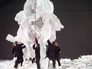 Alors, sous nos yeux, par des gestes nets, ils vont fabriquer formes abstraites, pantins, figures géantes... éphémères.