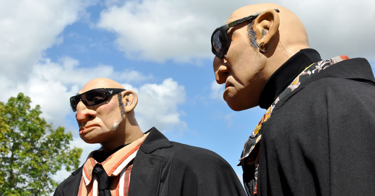 Les Tony's c'est pas rien dans le monde de la sécu. Ils ont de la prestance. Ils plaisent aux filles c'est normal : de belles bagouzes aux doigts, des cravates toujours bien ajustées, des pompes nickel chrome et des montres Drollex de chez Drollex !! Ils acceptent volontiers de poser pour la photo mais leur devoir ils l'accomplissent au p'tit poil en pros de la sécu. L'oreillette est là bien plantée dans l'oreille. Lunettes à verres fumés, menton galoche et intimidant. Et tout de même un léger mégot entre les lèvres pour donner de la décontraction. C'est utile dans ce métier. Mais faut pas trop les chatouiller ces garçons, ce sont des carrures et des têtes à rouflaquettes. Vous voyez ce qu'on veut dire... on ne les mène pas en bateau, ces gaillards-là, sans compter qu'on les voit partout là où il faut. Ils ont le don d'ubiquité comme on dit. Je sais c'est un mot qu'ils ne connaissent peut-être pas mais faut bien que vous compreniez qu'ils sont au top du top. Les entrées sont filtrées, les colis suspects sont identifiés en un clin d'oeil, les foules canalisées et les récalcitrants remis en place en deux temps trois mouvements. Quelques méritants ont droit à une récompense : un bonbon STOPTOUT à la réglisse, ben oui, qu'est-ce que des vigiles pourraient offrir d'autre ?.