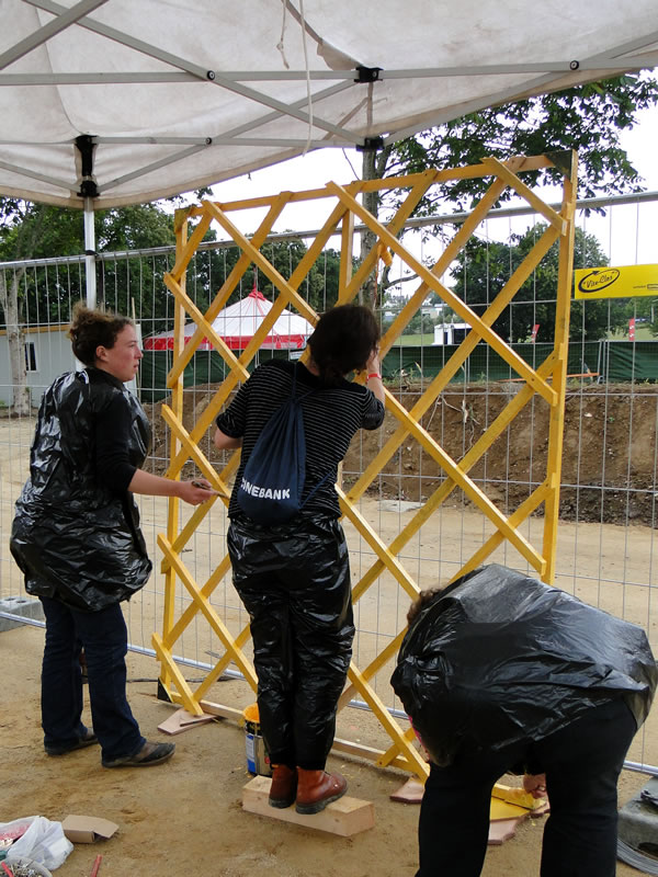 Dans ce qui sera à partir du vendredi 16 juillet à 16h16 tapantes, le nouvel espace entièrement dédié aux arts de la rue aux Vieilles Charrues, il y a encore tant à faire pour accueillir les festivaliers et les artistes. Dans ce cocon artistique seront présentés pendant 3 jours, 9 univers singuliers, 9 compagnies d'arts de la rue, comme une page à blanche à remplir, une nouvelle histoire à écrire pour les arts de la rue dans le plus grand festival de l'hexagone. La pression est palpable...