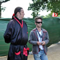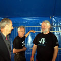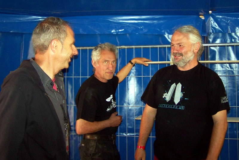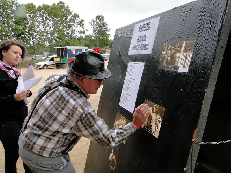 Le Verger n'est pas encore ouvert, mais la curiosité des premiers occupants du site est déjà de mise... Et les premiers visiteurs, employés, bénévoles et journalistes du festival, viennent jeter un oeil curieux derrière la désormais célèbre porte du Verger du Fourneau et des Vieilles Charrues.