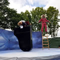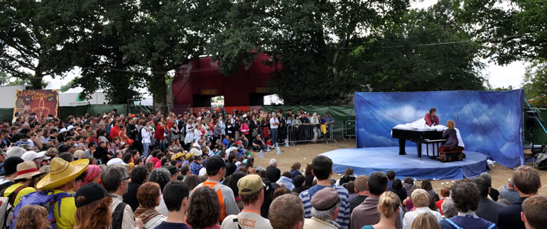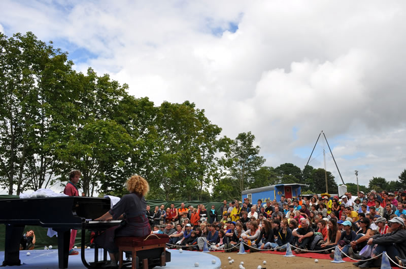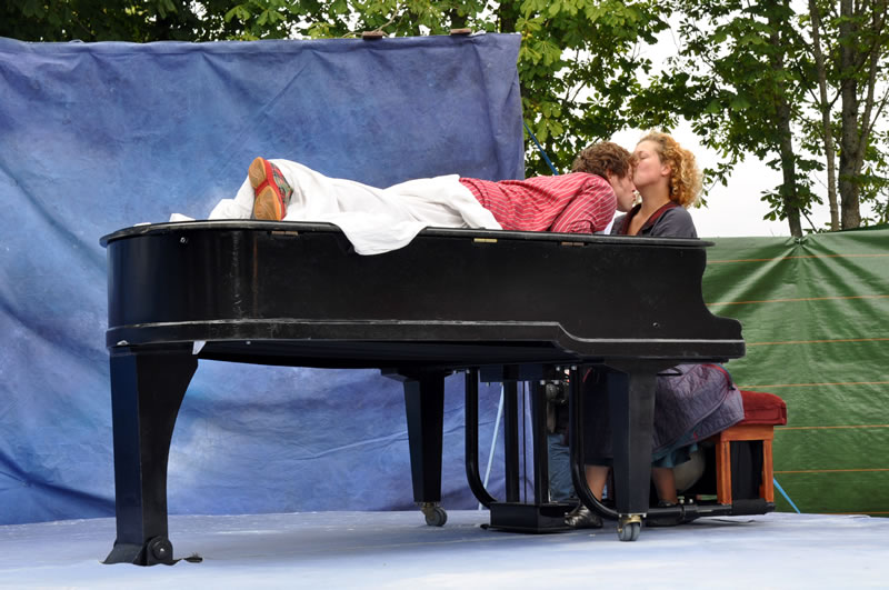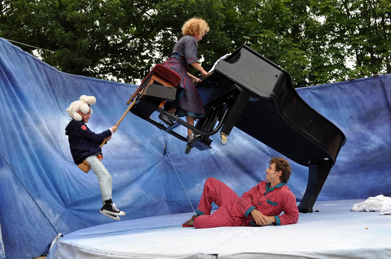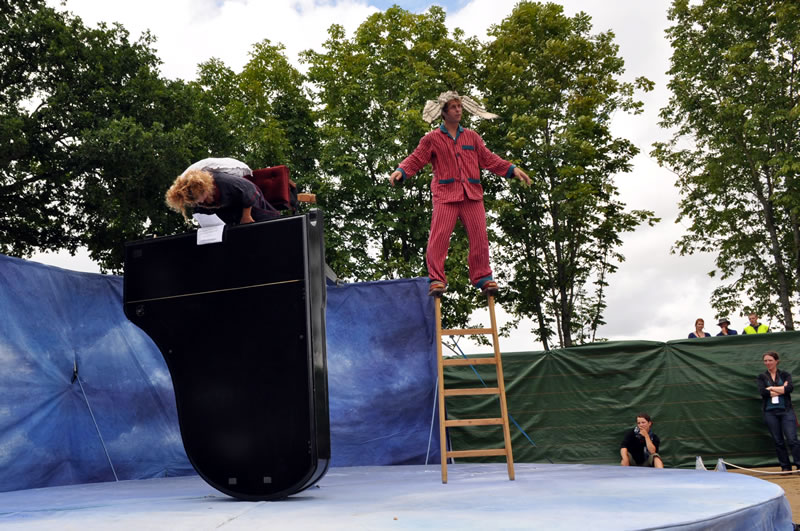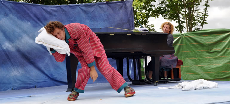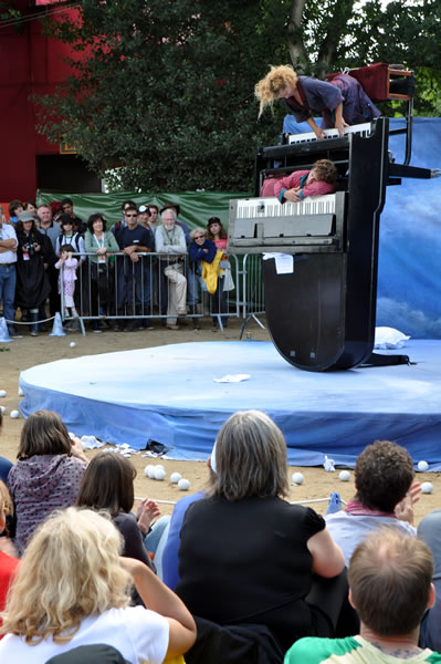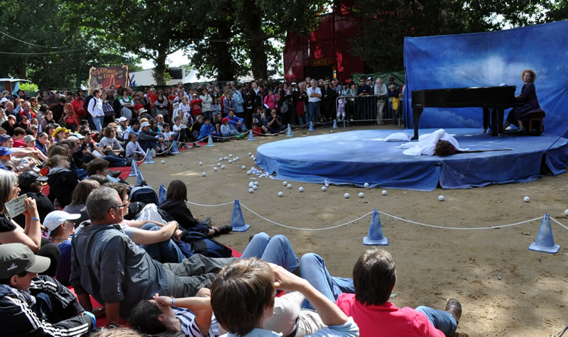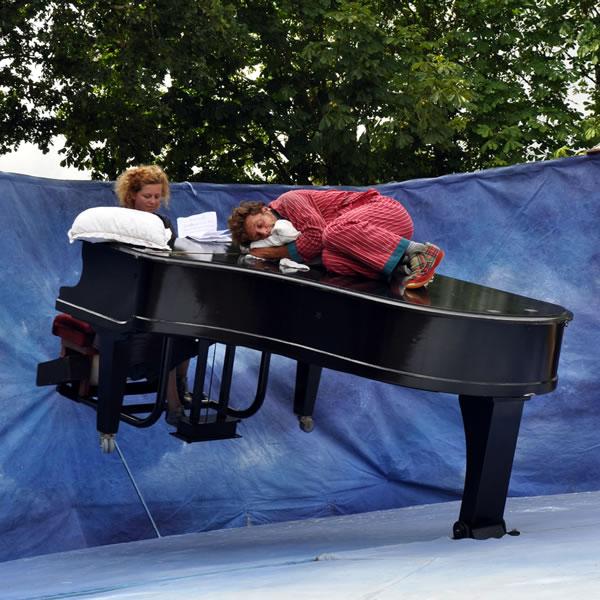 D’Irque et Fien sont d’adroits génies de l’escamotage et de la poésie. Le petit arsenal technique nécessaire à tout ça est à peine visible et le public se laisse toujours surprendre pour son bonheur. Quand les deux artistes se retirent en laissant une silhouette enfin endormie dans le piano on a envie, nous aussi, de goûter à ce sommeil de chambre bleue. Patience ! La nuit n’est pas très loin et, de toute façon, elle revient chaque soir. Vous ne pouvez pas la rater.