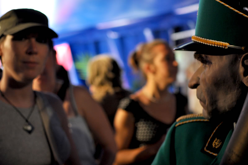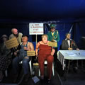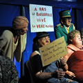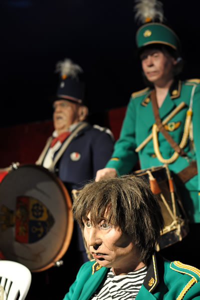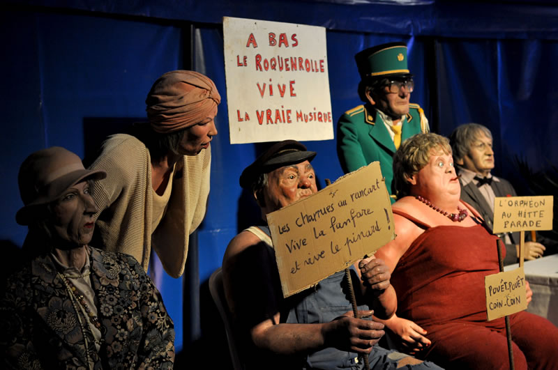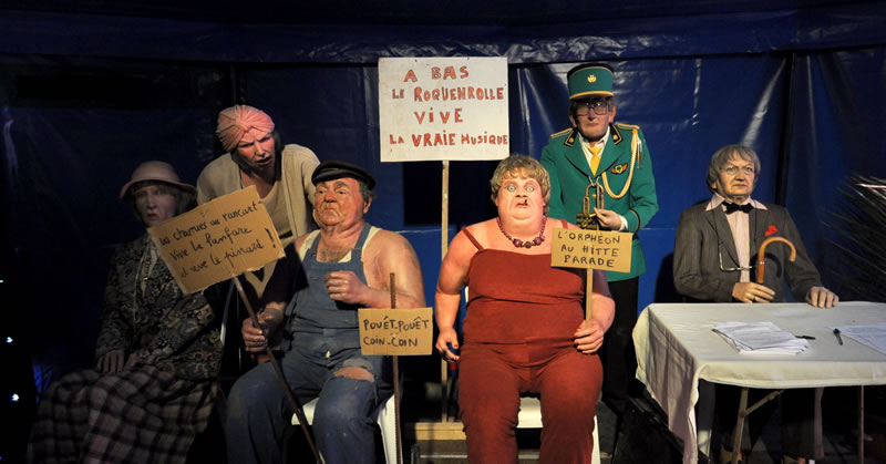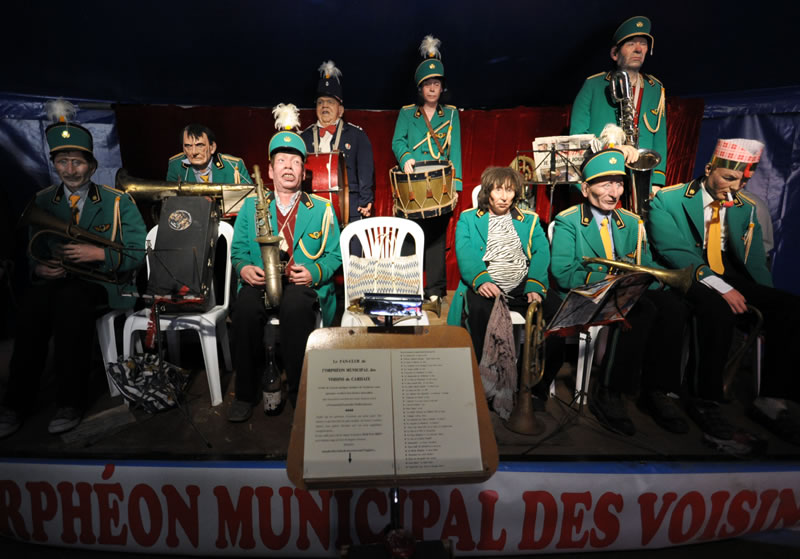 Sans faire pédant-quelque-part on dira que les Voisins c'est une exposition ethno-sociologique du meilleur cru de 10°5 ou, en d'autres termes, c'est de la momie d'ici et d'ailleurs, tout en pensant sans trop oser le dire qu'une telle assemblée, si elle s'animait là maintenant, elle aurait le droit de vote, choisirait des maires, des députés et des Présidents de République... Bon sang ne pensons pas au pire, c'est pas le jour. Ce n'est pas tendre tout cela, on vous l'accorde, ça sent le rouge-lim sans la lim, ça sent le radio-bière-foot, la soupe, les charentaises ou le café-pain-beurre... mais invitez-vous, allez écouter l'Orphéon et sa musique flonflonnante, ça vous changera les oreilles, allez rendre visite aux Voisins et faites-leur un brin de causette, il y a des taiseux parmi mais dites-vous que tous ces bons bougres parlent notre langue d'où qu'elle vienne. Vous verrez qu'à force de les regarder, à force de les écouter vous sentirez vous monter de la tendresse à leur égard, si, si, de la Tendresse avec un grand T on vous dit et vous signerez les yeux fermés leur pétition contre le roquènrolle, c'est sûr comme nous vous signerez contre tout ce qui est pour et pour tout ce qui est contre. Et vice-versa !
