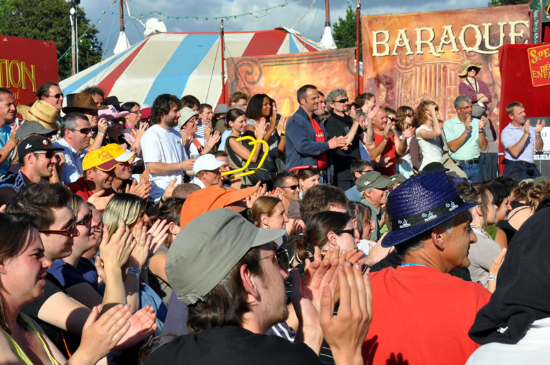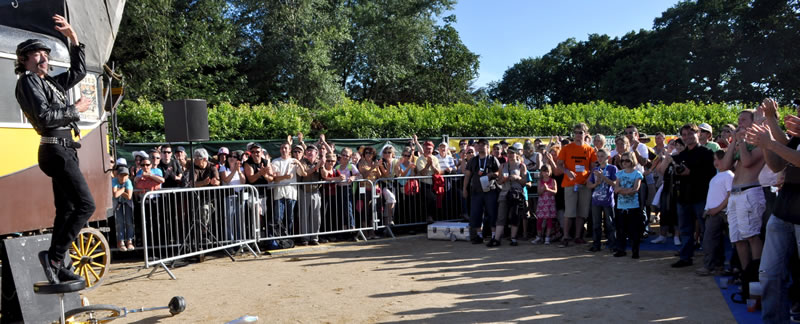 Sous un soleil radieux, le public des Vieilles Charrues et celui habitué aux Arts de la Rue attendent Mario Queen of the Circus. Devant des spectateurs conquis d'avance à la cause du rock il faut garder la tête froide. Du jonglage en veux-tu en voilà, c’est ce que Mario apporte et donne à son public : l’univers fascinant de la jonglerie. Le public est présent aussi dense qu'enthousiaste. Il se laisse emporter par la virtuosité du jongleur: cinq balles, cinq massues dans les mains au son de la musique de Queen. C’est tout l’univers de Freddy Mercury, qu’on a devant les yeux. Jeu de charme et de séduction, casquette de cuir sur la tête et ceinture cloutée Mario tient son public en haleine. Le coup d'éclat fonctionne. Mais jusqu’où va-t-il nous emmener ?!?