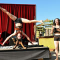 Dans le domaine du cirque, le contorsionniste est un artiste qui fascine et terrifie. Plus encore s’il s’agit d’une femme. Et plus encore s’il s’agit de deux femmes. Dans l’exercice de leur art Bertha et Miranda sont unies pour le meilleur et pour le pire. Elles sont capables de vous régaler d’un Gâteau surmonté d’une Cerise et de vous démontrer quelques figures plus tard que le Baiser de la Gouine est mortel. Les deux jeunes femmes sont comme le recto et le verso d’un même être capable de se dédoubler et de se rassembler en un clin d’œil. Leurs mains, leurs jambes, leurs cheveux se disent tantôt oui et non, tantôt ni oui ni non et leurs voix se mêlent et se démêlent quand elles annoncent au public ce qu’elles vont lui offrir : un poème, une leçon de philosophie, une figure rare.