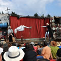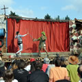 La Compagnie Les Trois Points de Suspension... vous convie à pénétrer dans le royaume des peurs et de l'étrange ! Un « Voyage en bordure du bord du bout du monde », une épopée cosmique retraçant le tragique destin du philosophe SOPHOCLES qui croisa la route des célèbres frères GRIMOX !