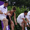 L'avenir de la secte, heu... du step n'a jamais été aussi ambitieux ! Pour bien démarrer, une leçon des règles de vie de l'établissement n'est pas négligeable ! Pas de faux pas, pas de chaussures cirée, pas de sandwichs, une alimentation saine et équilibrée sont de rigueur ! Après un briefing bien constitué, c'est bien sûr l'heure de suer ! Tout le monde est amené a faire l'échauffement pour prévenir les déchirures ou autres malheurs. Et un pas devant, un pas derrière, un pas sur le côté et deux petits tours, les spectateurs se voient intronisés au rang de nouveaux adhérents à la Steppologie !