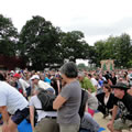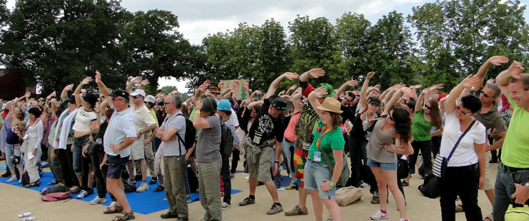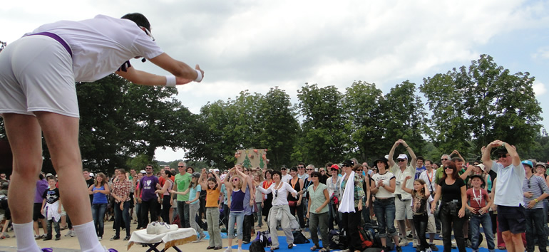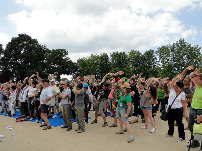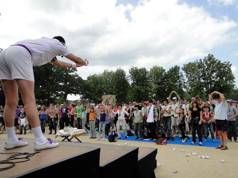 Les petits, les grands, les sportifs, les moins sportifs prennent place devant l'autel de la grande Église. Pied-Jean, Pied-Teddy et Pied-Guy sont des fidèles des dogmes de la Steppologie. Jamais ils ne trahiront leur foi et surtout leur grande confiance en Michael Mc Step ! Paix à son âme... Non, le step n'a jamais vraiment disparu, il reste en effet des adhérents et ils ont même un adage : « Lève-toi et Step ! Ouuuuh Baby ! »