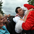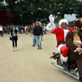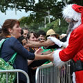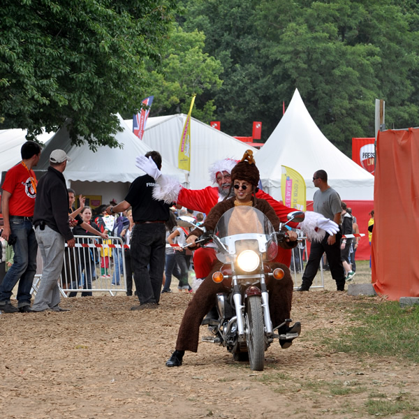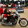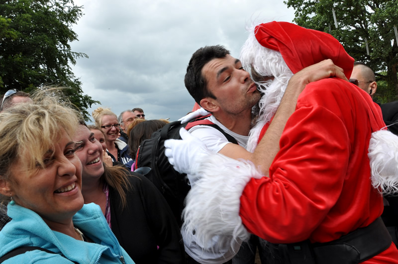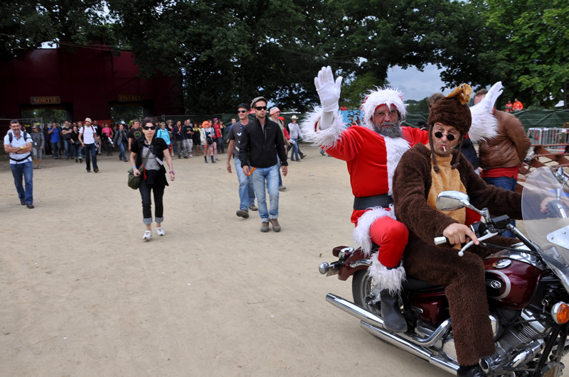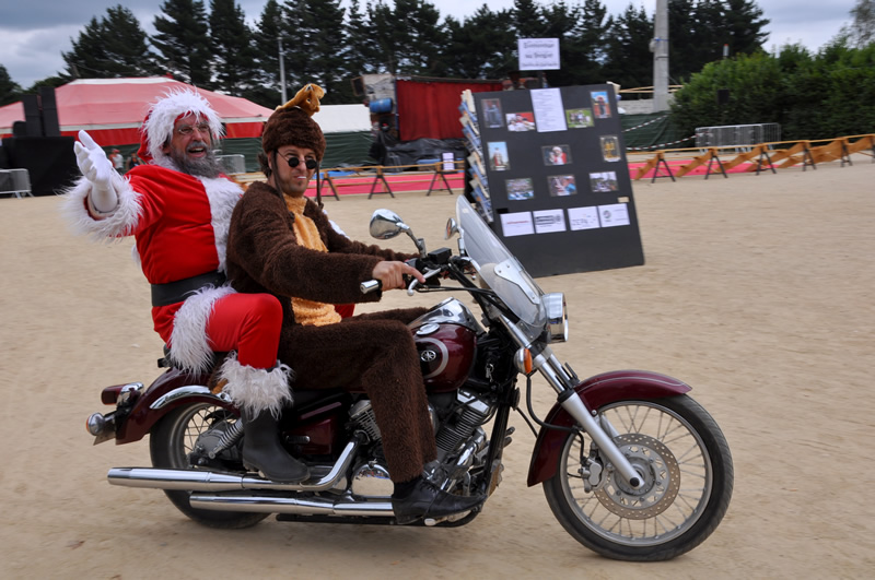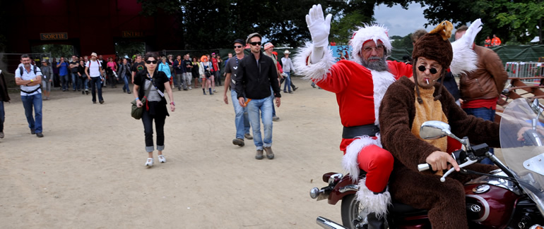 Malgré la pluie, l'assistance se presse et devient impatiente à l'idée de rencontrer le Père Noël en personne ! Un ronronnement lointain se fait entendre, est-ce le traîneau du Père Noël qui avance à une vitesse effrénée ? Et non cette année, le Père Noël arrive par les terres et non les cieux ! C'est donc dans une ambiance de folie que la Chopper du Père Noël fait son apparition. Assis derrière son fidèle renne, Adolf, le Père Noël salue ses fans et fait un bain de foule, sert des mains sous le regard de son garde du corps visiblement sous tension.