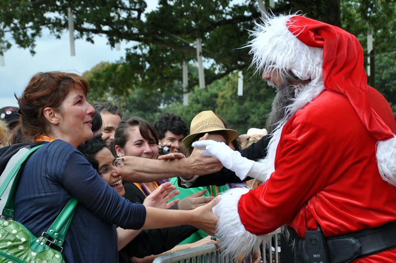 Nous déclarons donc ouvertes les portes du Verger en ce vendredi 15 août 2011 par le Père Noël lui-même, semble-t-il inscrit dans un groupe d'activistes appelés les Tony Clifton Circus !