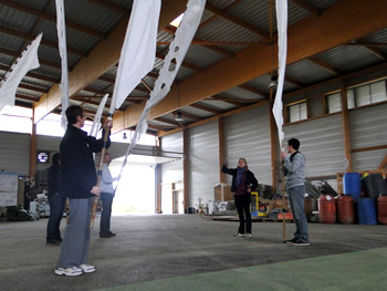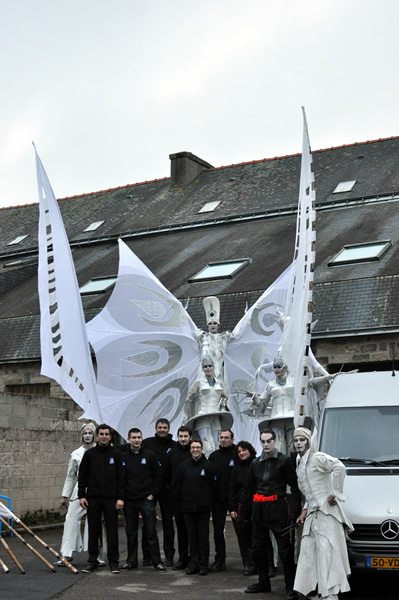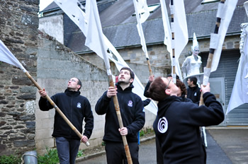 Sept bénévoles et stagiaires des Vieilles Charrues ont participé à la première française du spectacle White Wings. Une journée durant, la compagnie Close Act a initié les participants aux maniements des drapeaux et à la déambulation. Encadrés par Karine et Julie du Fourneau, les bénévoles ont pris à cœur leur mission du jour. Pour certains, prendre part à un spectacle était une première. Une expérience qu'ils n'oublieront pas de si tôt !