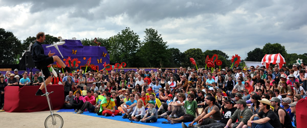 Embarquant au sens propre comme au sens figuré les spectateurs, Immo enchaîne les numéros sur un rythme effréné. Du monocycle XXL au jonglage avec balles de ping pong rien ne semble lui résister. N'hésitant pas à se lancer dans des improvisations musicales, Immo a su conquérir le cœur des petits et grands festivaliers.