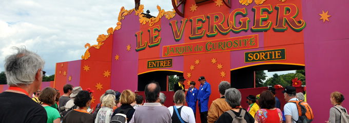 Vendredi 20 juillet 2012, il est 15h sous le soleil carhaisien, les premiers festivaliers entrent sur le site de Kerampuilh. Les plus motivés entament un sprint vers on ne sait où … Mais ... ?! Un groupe semble se détacher du peloton de tête. Le menton fier, la démarche élancée, le regard alerte porté vers l'horizon … les plus inspirés se dirigent sans nul doute vers le Verger !