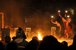 Les flammes s'éteignent peu à peu, la musique cesse et la nuit reprend ses quartiers sur la place de l'église de Carhaix. Dans les yeux ronds du public, brillent encore la fureur des flammes et la paisible descente d'un humble solitaire.