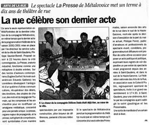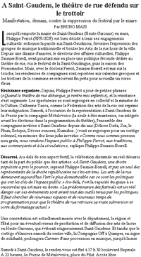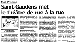 "Le théâtre de rue contourne Saint-Gaudens (l'article n'est plus disponible sur le site du journal)"