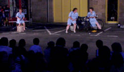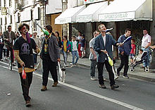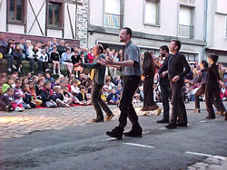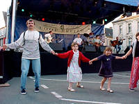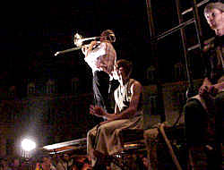 19h33, les trois coups sont partis (enfin 2, y'a eu un raté). La parade morlaisienne Tri-balles débute la soirée. |