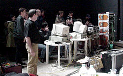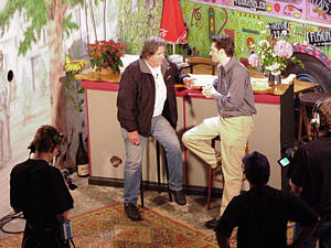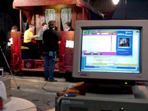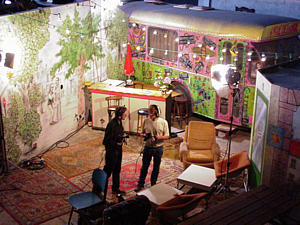 Et c'est parti pour une après-midi de mise en place du studio. A côté, au Fourneau, on continue à s'activer : l'expo de Paul Bloas, les 2000 Bonjours de Brest 2000 (aujourd'hui on a eu Georges Pernoud de Thalassa) |