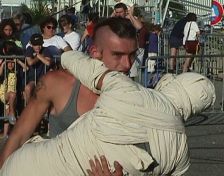 20h06 L'un des frères Kazamaroff montre le bout de sa houpette. Le public s'est installé depuis de longues minutes. Les enfants sont assis sur l'espace moquetté. Des sons étranges et parfois effrayants se font entendre. Certains enfants se mettent à pleurer. Un momie apparaît. Le spectacle commence. Un spectacle tout en mimes, danses et jonglage. Les larmes laissent la place aux rires. Chaque geste des comédiens est assorti d'un bruitage comique. |
