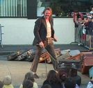 21h25 Icare déboule sur le site du Vieux Fourneau. Le mythe grec est librement adapté et se déroule quelques années avant la Première Guerre mondiale. Le théâtre du Miroir présente là sa première création de rue. Il était déjà venu de Quimper à l'époque où l'ex-Fourneau revêtait encore un toit. Cela dit, pour du théâtre aérien, c'est plus pratique sans plafond. La troupe entend réunir un maximum de siciplines artistiques au service du théâtre : les trampolinistes côtoyent ainsi les chanteurs polyphoniques. |