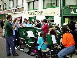 Les Grooms ne sont pas seulement des chanteurs confirmés, ils sont également de bons musiciens... et le font savoir. Ces cabots entraînent la foule dans un opéra itinérant, La Flûte en Chantier. |