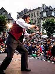 Place Souvestre, on peut s'arrêter un instant pour écouter de la musique après avoir regardé les (très) jeunes artistes du cirque installé place des Jacobins. Un peu peur qu'ils ne se cassent la figure de temps en temps, mais un sens du spectacle indéniable. |