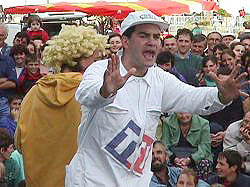| Le spectacle commence presque normalement, mais rassurez-vous, il dégénère très vite. Georges a fait une surprise à sa Lucienne... La surprise, vous pouvez la voir ci-contre! Comment définir Aristobulle? Ecoutez cette jeune spectatrice! | |