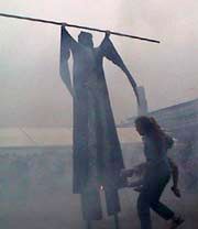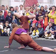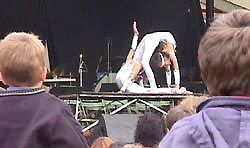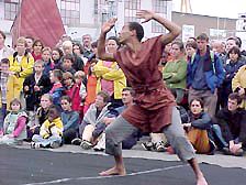 descendent sur les quais accompagnés du Cirque Kino's... Pour annoncer leur spectacle, ils nous réservent deux numéros très impressionnants... |