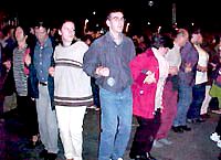 Au milieu des fumigènes, une musique orientale s'élève