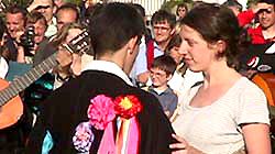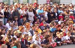| Plus loin le groupe breton Rasta Bigoud laisse naître des petits clans de danseurs qui se forment devant la scène. Le public se laisse entraîner par ce reggae qu'il connaît bien puisqu'il revient aujourd'hui dans les discothèques de nos adolescents. |